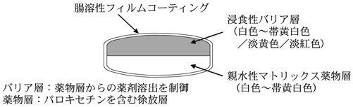 2. 14.1.2 本剤は腸溶性フィルムコーティングを施した放出制御型の腸溶性徐放錠であるため、噛んだり、割ったり、砕いたりせずにそのまま服用するよう指導すること。