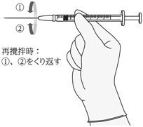 均一な懸濁液を0.1mL以上吸引し、投与直前に10秒間再攪拌して0.1mLを硝子体内に投与する。