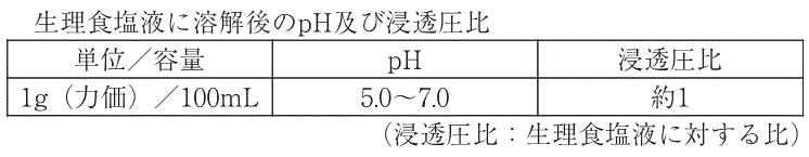 - 14.1.3 溶解後は速やかに使用すること。なお、やむを得ず保存を必要とする場合でも8時間以内に使用すること。この場合、微黄色の溶液の色調が時間の経過とともに濃くなることがある。