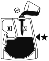 14.1.1 本剤は、大室と小室とが隔壁で仕切られたプラスチック容器で構成される二室タイプの製剤である。使用時には、二室の成分を水に混合・溶解し、1袋全量を約2Lの溶解液とした後投与すること。また、隔壁が完全に開通し、小室の薬剤が残っていないことを確認した後投与すること。