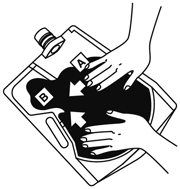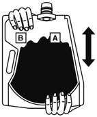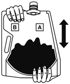 キャップをきちんと閉め、バッグを寝かせて、大室(A剤)の上から両手で押して大室と小室(B剤)との隔壁を開通させる。