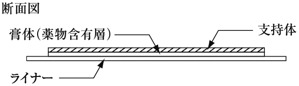 外観・性状 淡桃色で四隅が丸い長方形のテープ剤で、膏体面は、透明のライナーで覆われている。